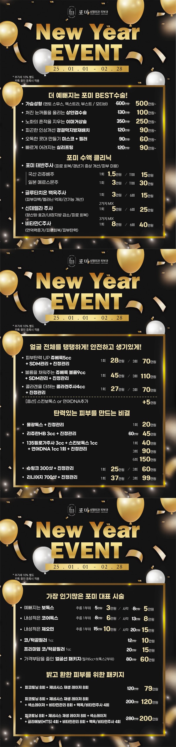 2025 New Year Event 페이지 정보 작성자 포미성형외과 작성일24-12-31 11:44 조회2,513회 관련링크 이전글 다음글 목록 답변 본문 2025년 맞이 새해 이벤트 입니다! 이전글 다음글 목록 답변